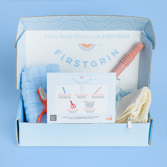 Start healthy habits early with the Firstgrin Intro Kit. Created by Dr. Ashley Lerman, a pediatric dentist and mom, this kit includes expert tips, baby-safe tools, and everything you need to make brushing simple from the start. Use code SMILEBRIGHT1 to unlock 1 free month of the Firstgrin Oral Care Companion App. Baby Dental Care Kit by Pediatric Dentist Dr. Ashley Lerman The Firstgrin Introductory Dental Care Kit offers a comprehensive range of dental care essentials for your child. Each item has been carefully selected and endorsed by pediatric dentist mom Dr. Ashley Lerman for its quality and effectiveness. Organic...